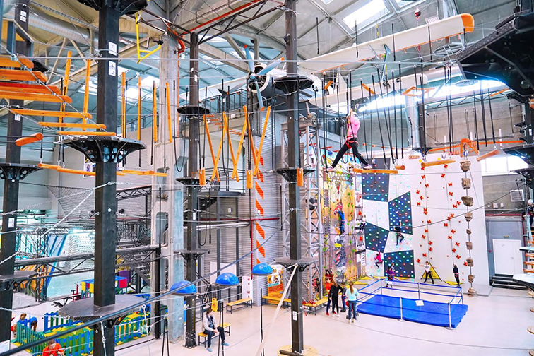 设备采用高强度钢架结构与环保材质,耐用且易维护,适配商场中庭、室内运动馆、文旅综合体、青少年拓展基地等场景,既能成为年轻客群与亲子家庭的探险打卡点,也能作为团队拓展、研学教育的核心场地,有效带动客流与消费。