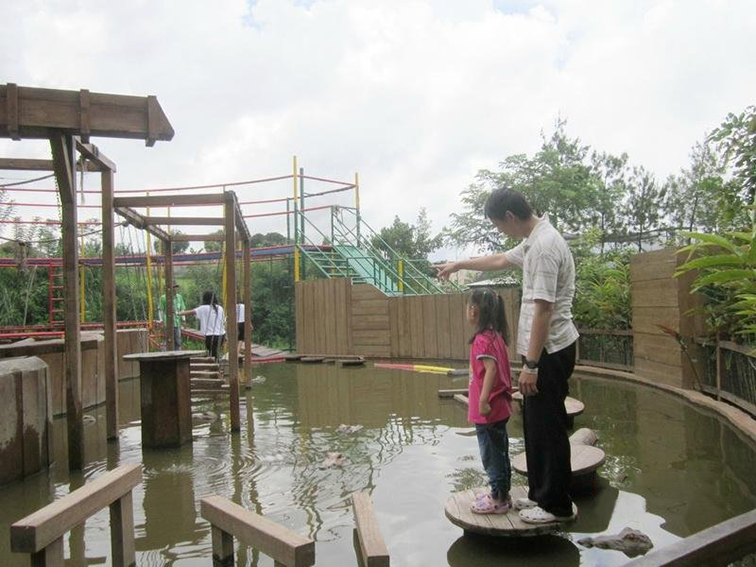 游客可亲子组队或结伴挑战,在晃荡的浮台与木桩间锻炼平衡感,在绳网障碍中考验协作力,全程兼具趣味性与拓展性,儿童可在家长陪同下逐步闯关,是亲子陪伴、团建拓展的欢乐场。设备采用防腐原木与防滑浮材,全模块缓冲减震,搭配浅水域设计,安全系数高,适配全年龄段人群,适合安置在生态农庄、郊野营地、亲子乐园等场景,既能作为亲子互动的核心项目,也能凭借乡野间的独特体验成为网红打卡点,带动客流与话题传播。